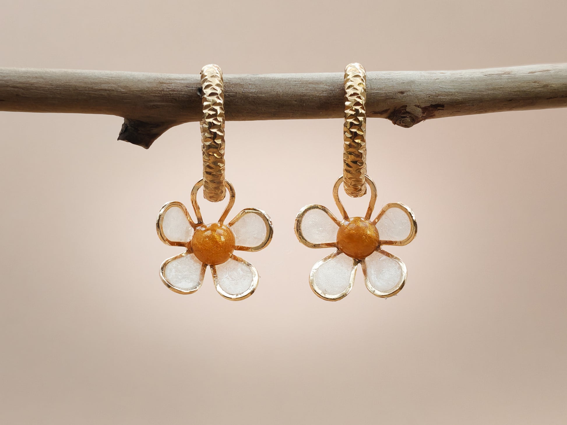 Boucles d’oreilles créoles – Marguerite au cœur solaire