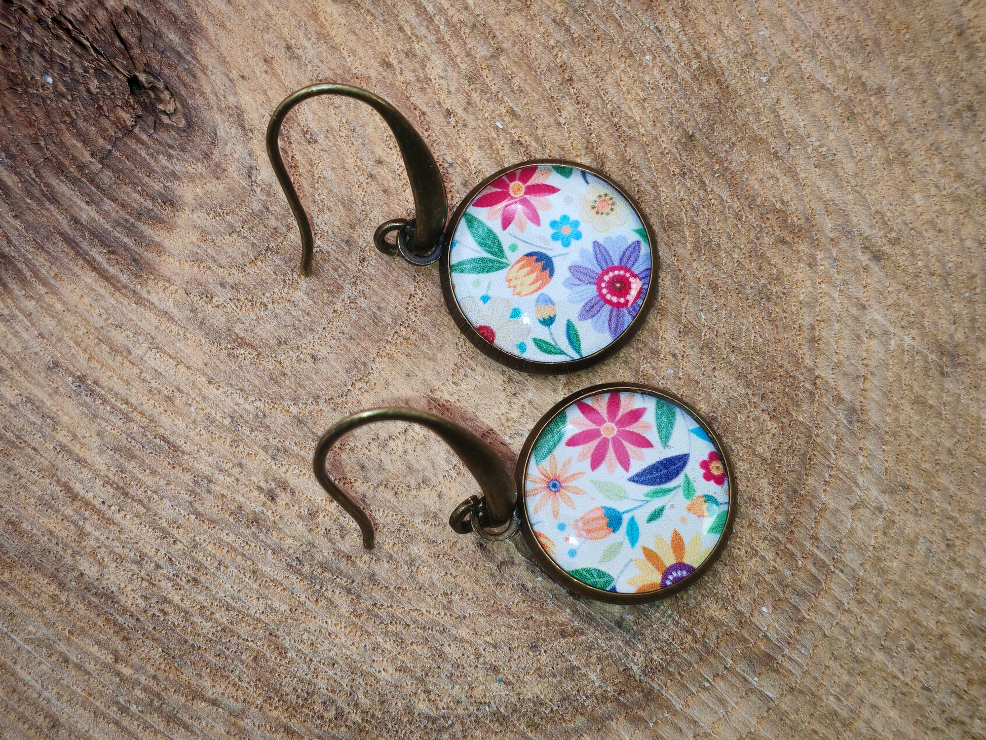 Boucles d’oreilles – Jardin en fête sur fond ivoire