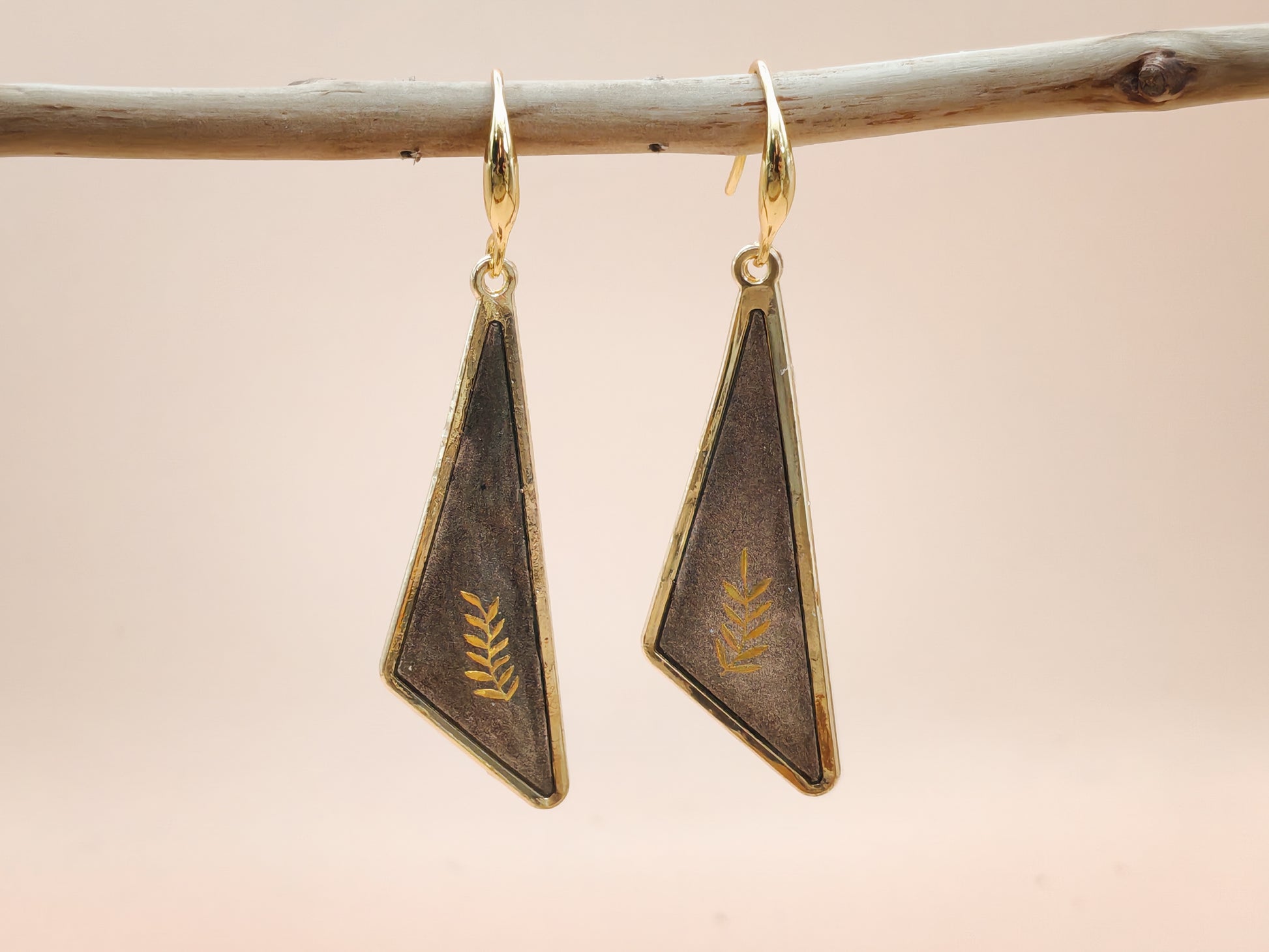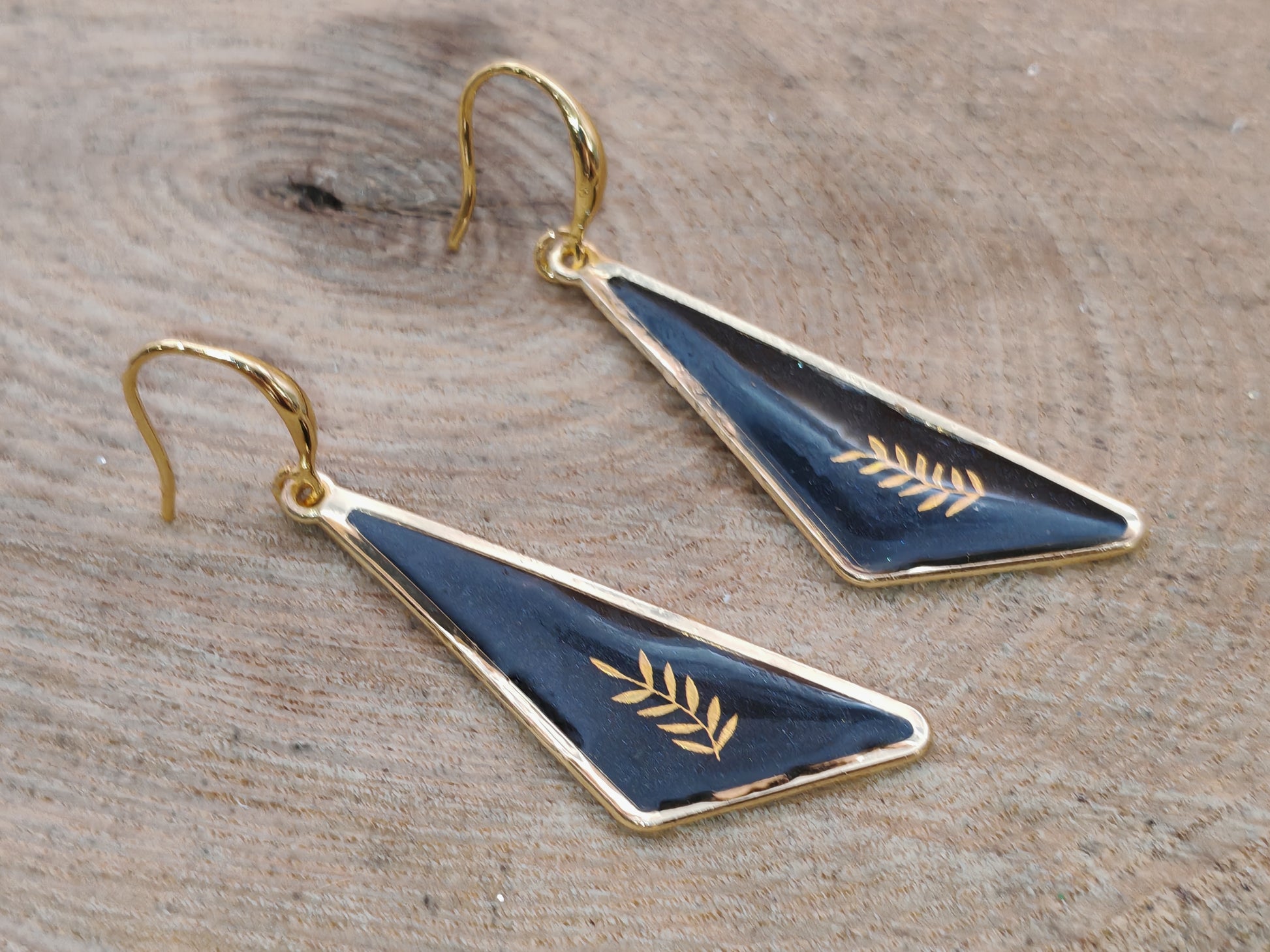 Boucles d’oreilles – Triangles noirs feuille dorée
