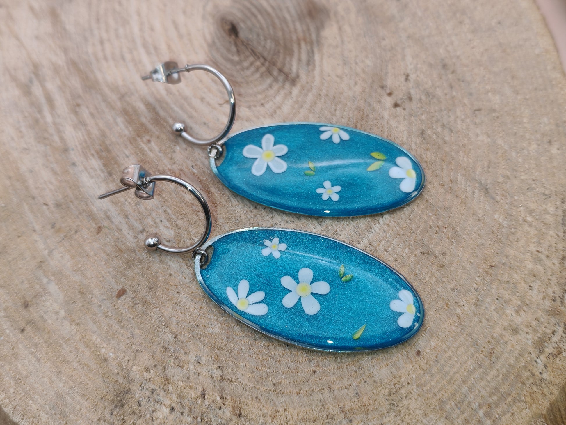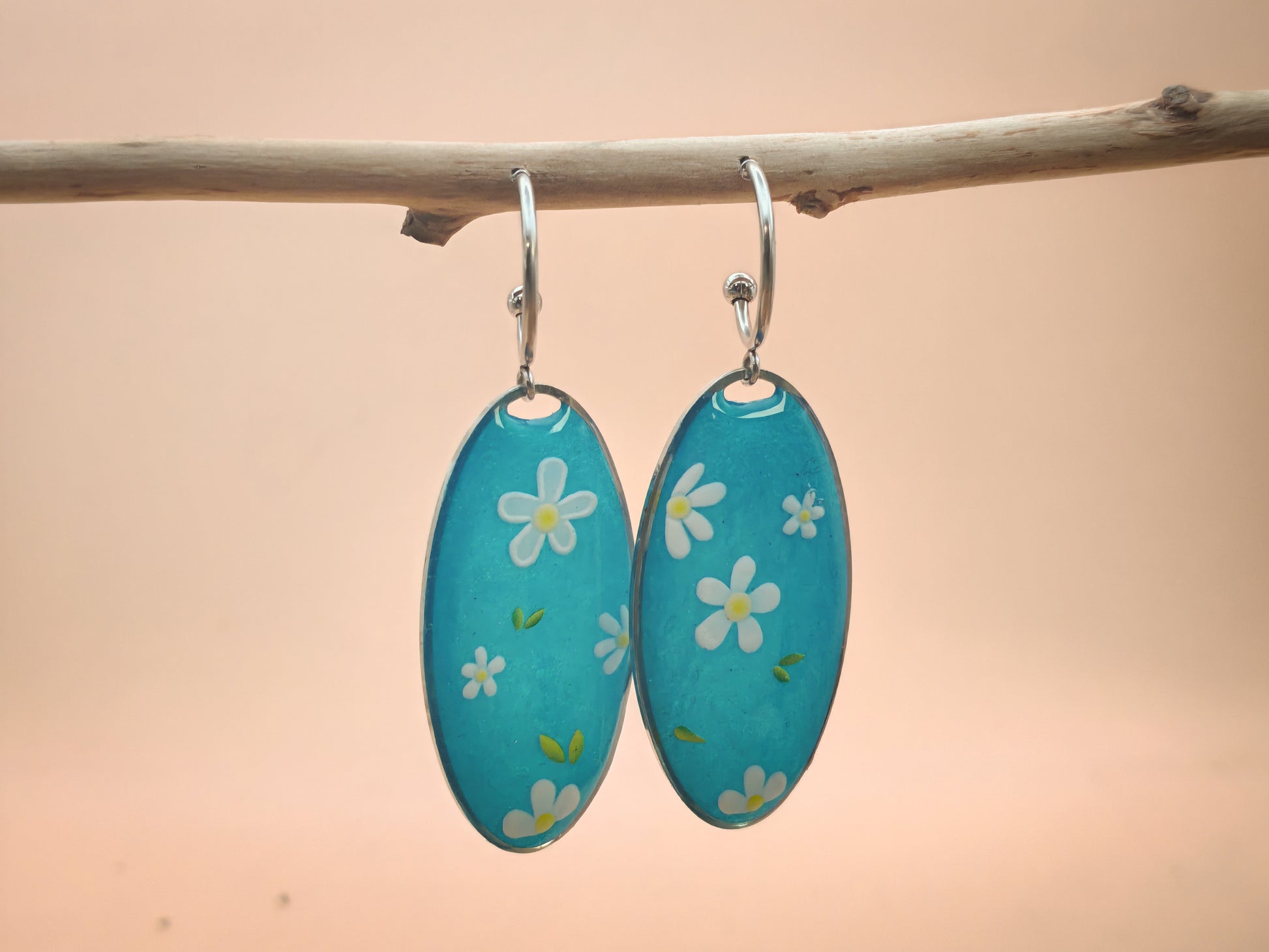 Boucles d’oreilles – Fleurs sur fond turquoise