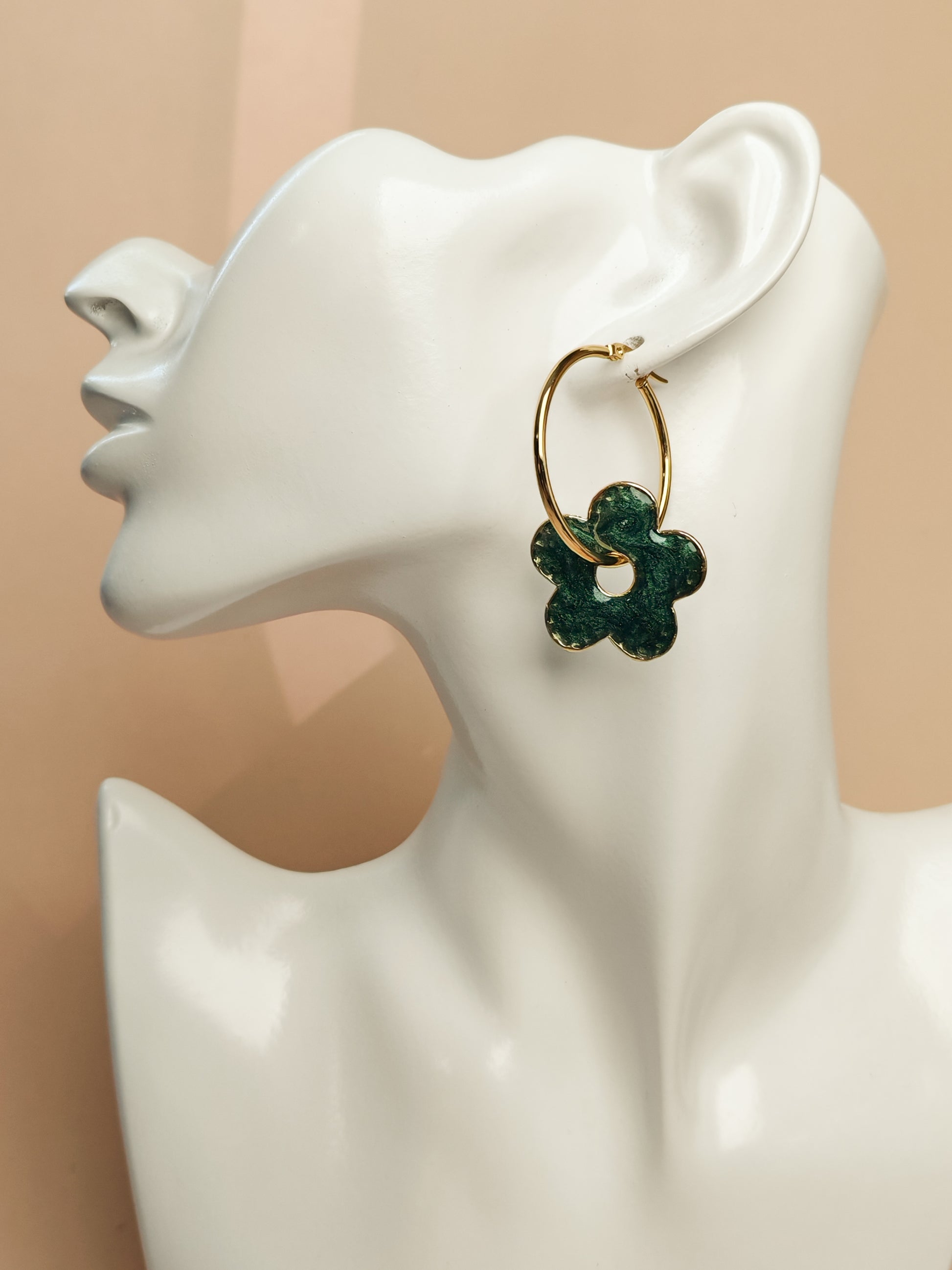 Boucles d’oreilles – Fleurs vert profond