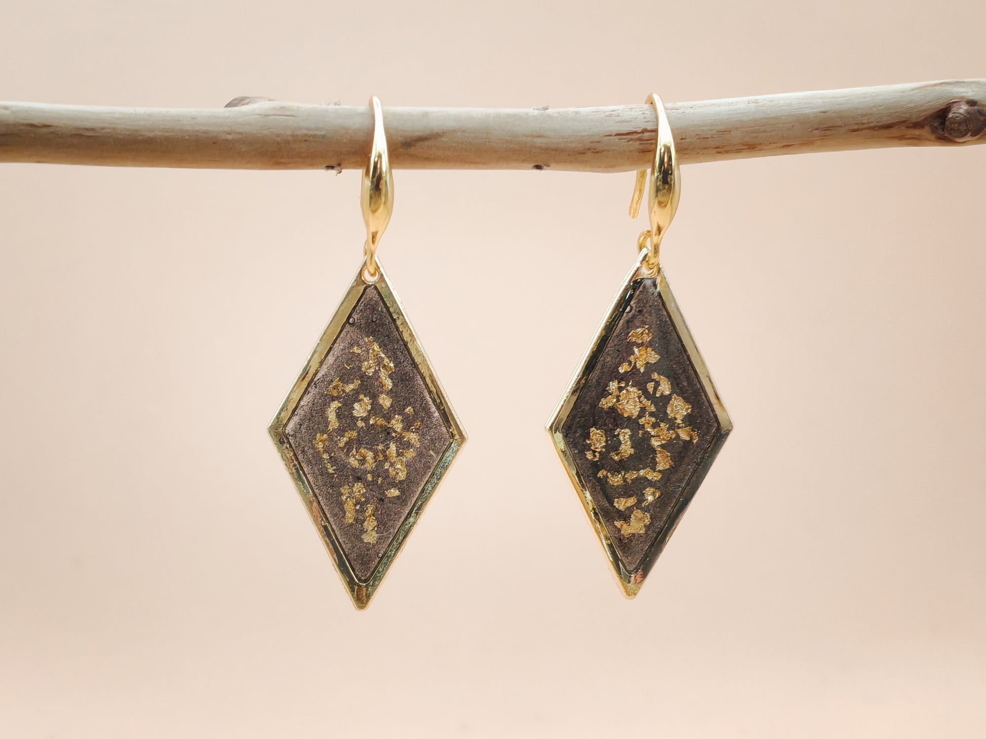 Boucles d’oreilles – Losanges noirs éclats dorés