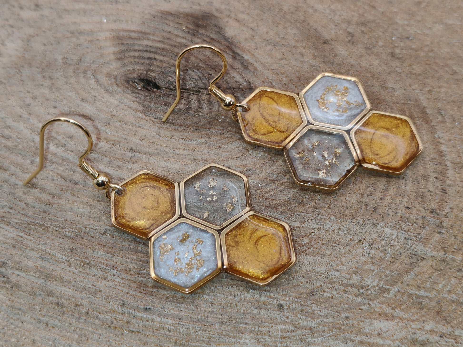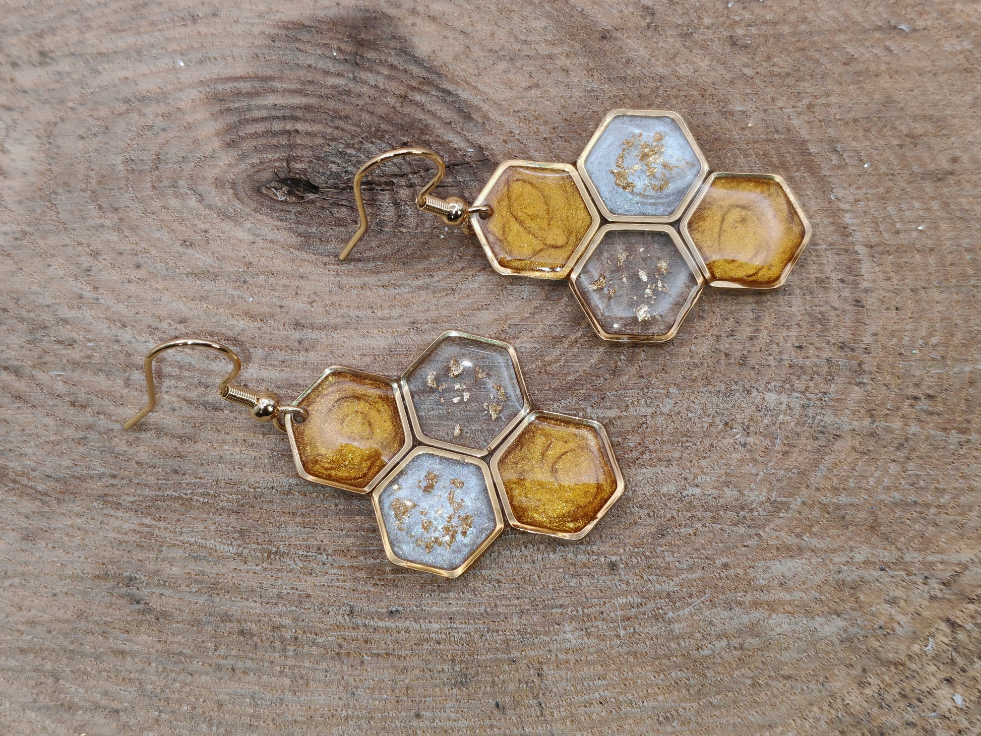 Inspirées par l’univers délicat des alvéoles, ces boucles d’oreilles évoquent une petite ruche lumineuse, formée de quatre hexagones assemblés avec harmonie.