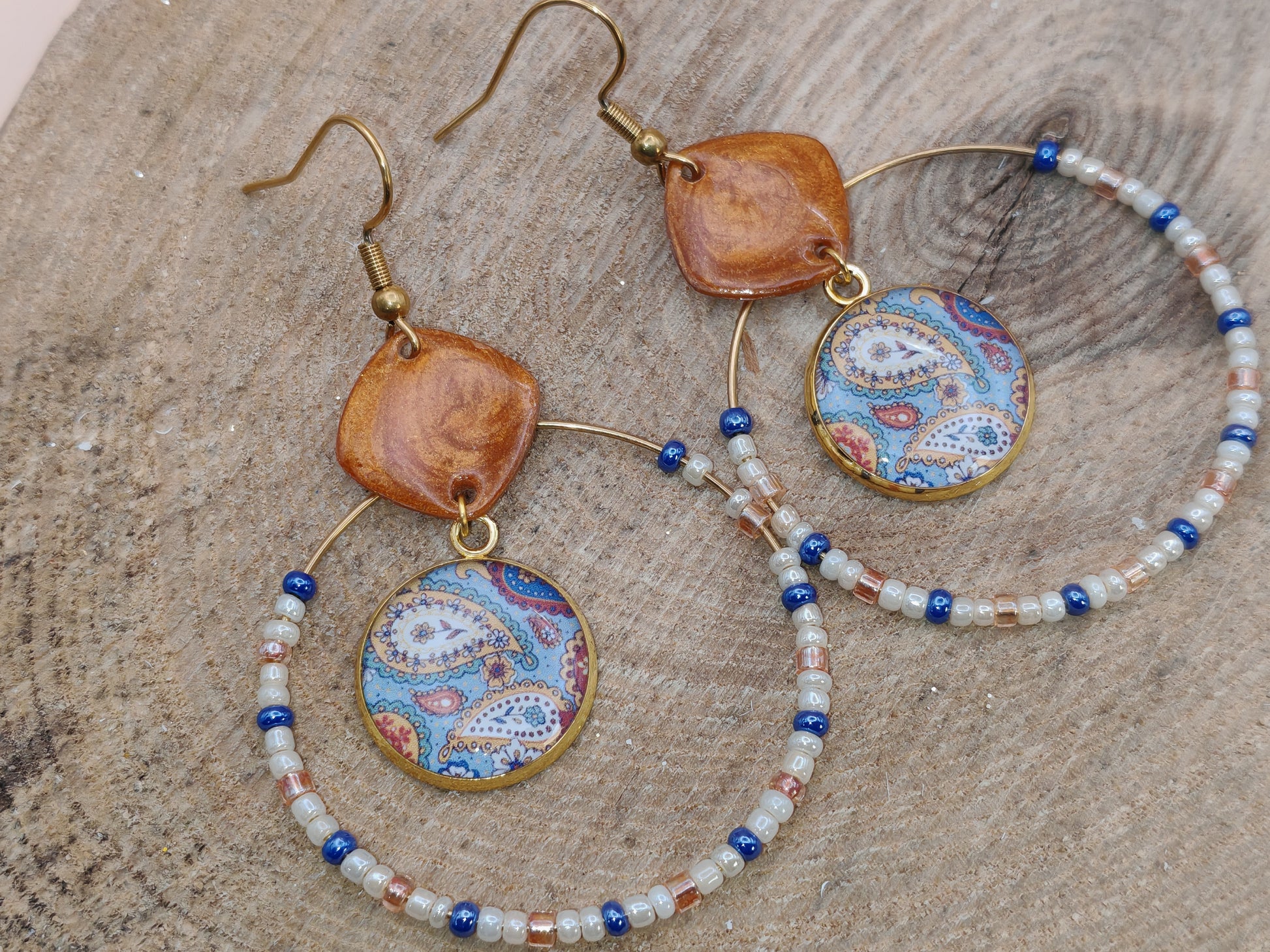 Boucles d’oreilles – Cercles perlés et arabesques colorées