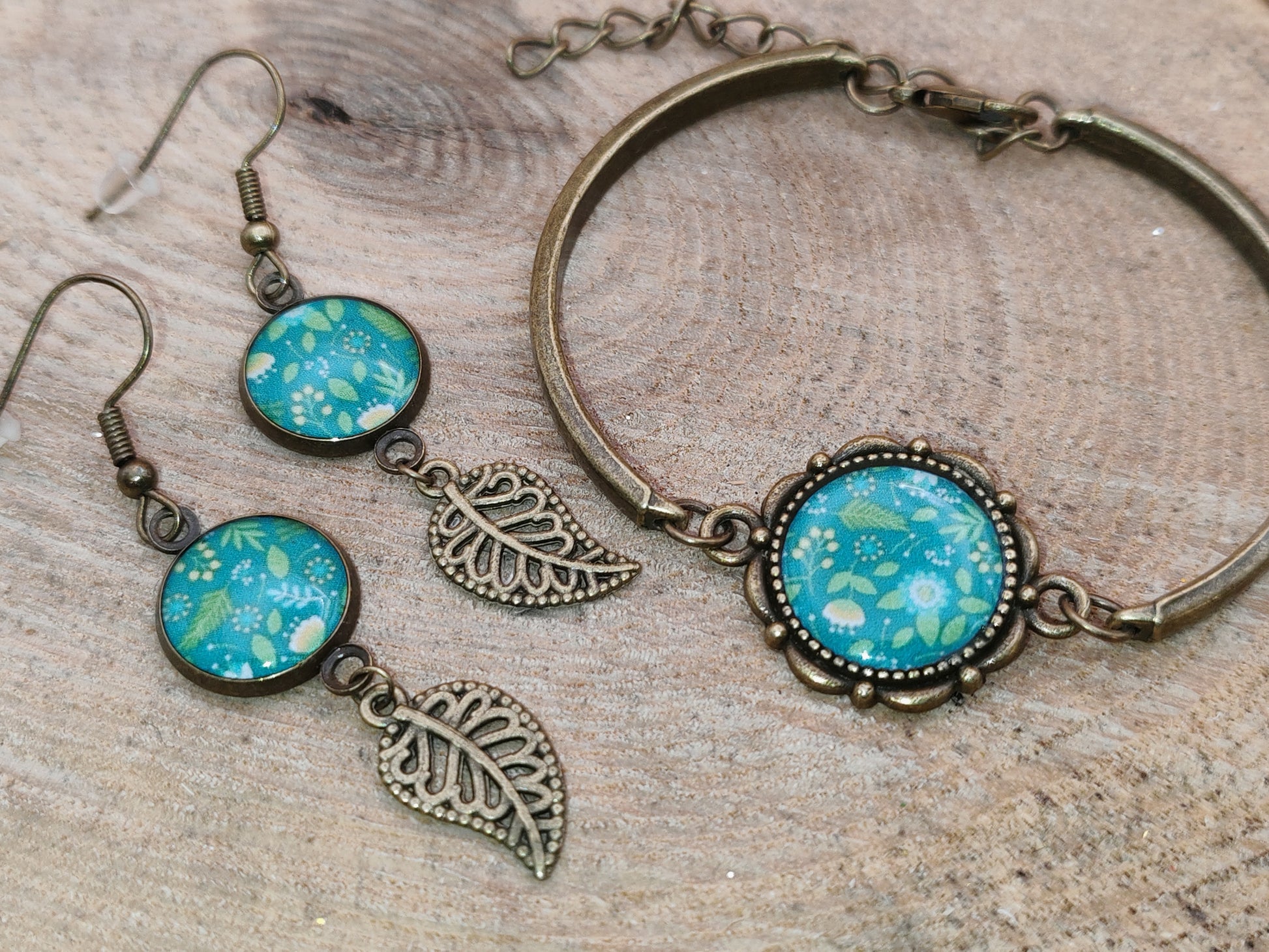 Ensemble bracelet + boucles d’oreilles – Promenade en clairière