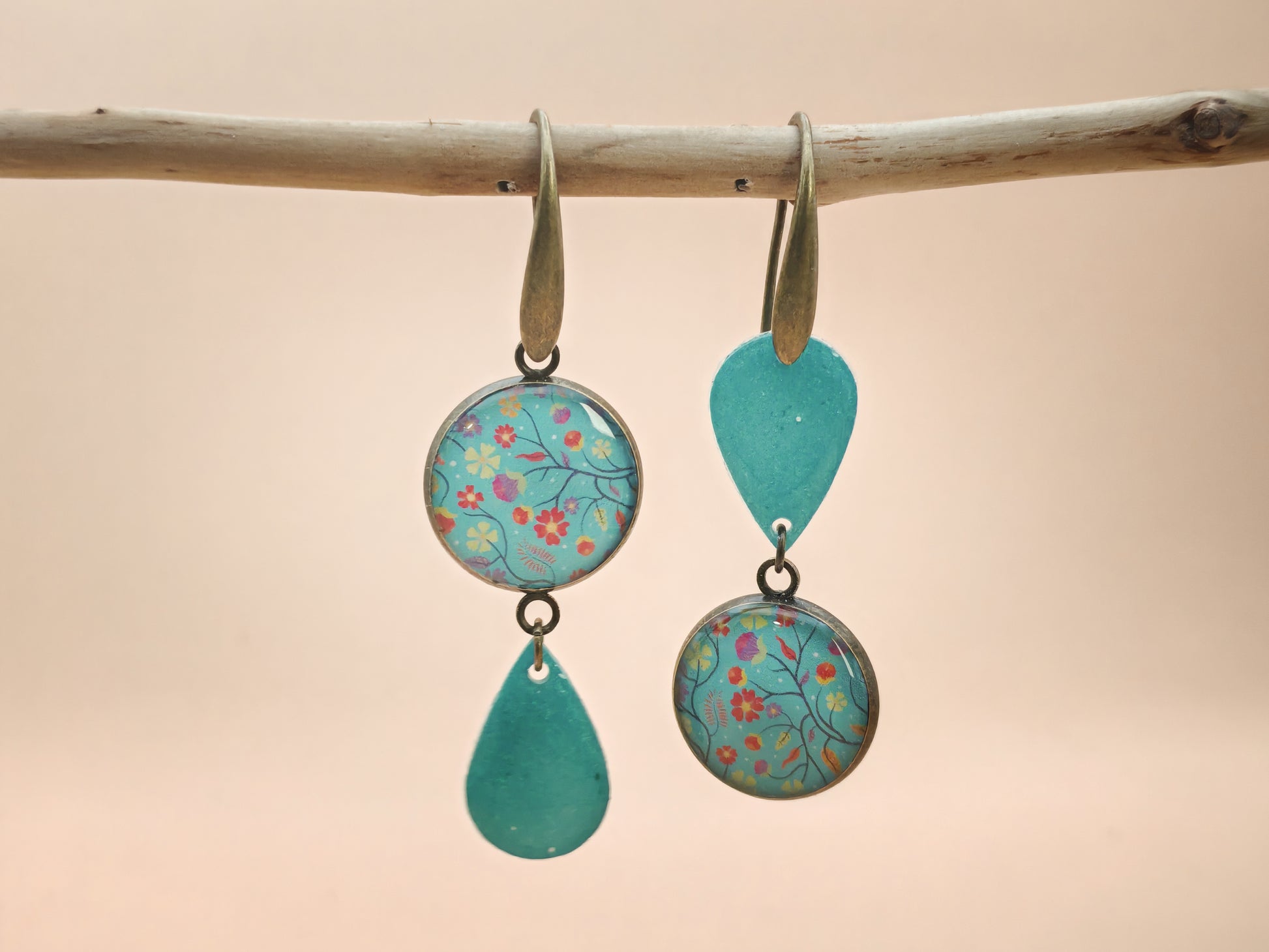 Boucles d’oreilles asymétriques – Floraison turquoise