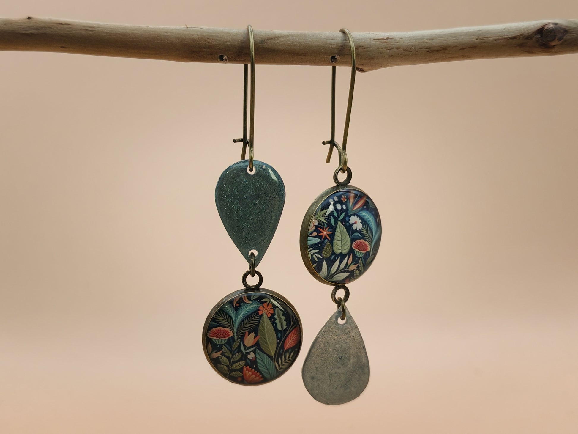 Boucles d’oreilles asymétriques – Feuillage nocturne