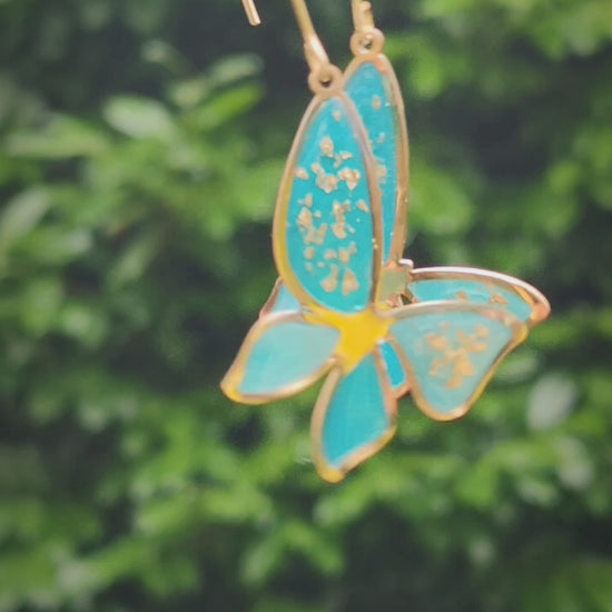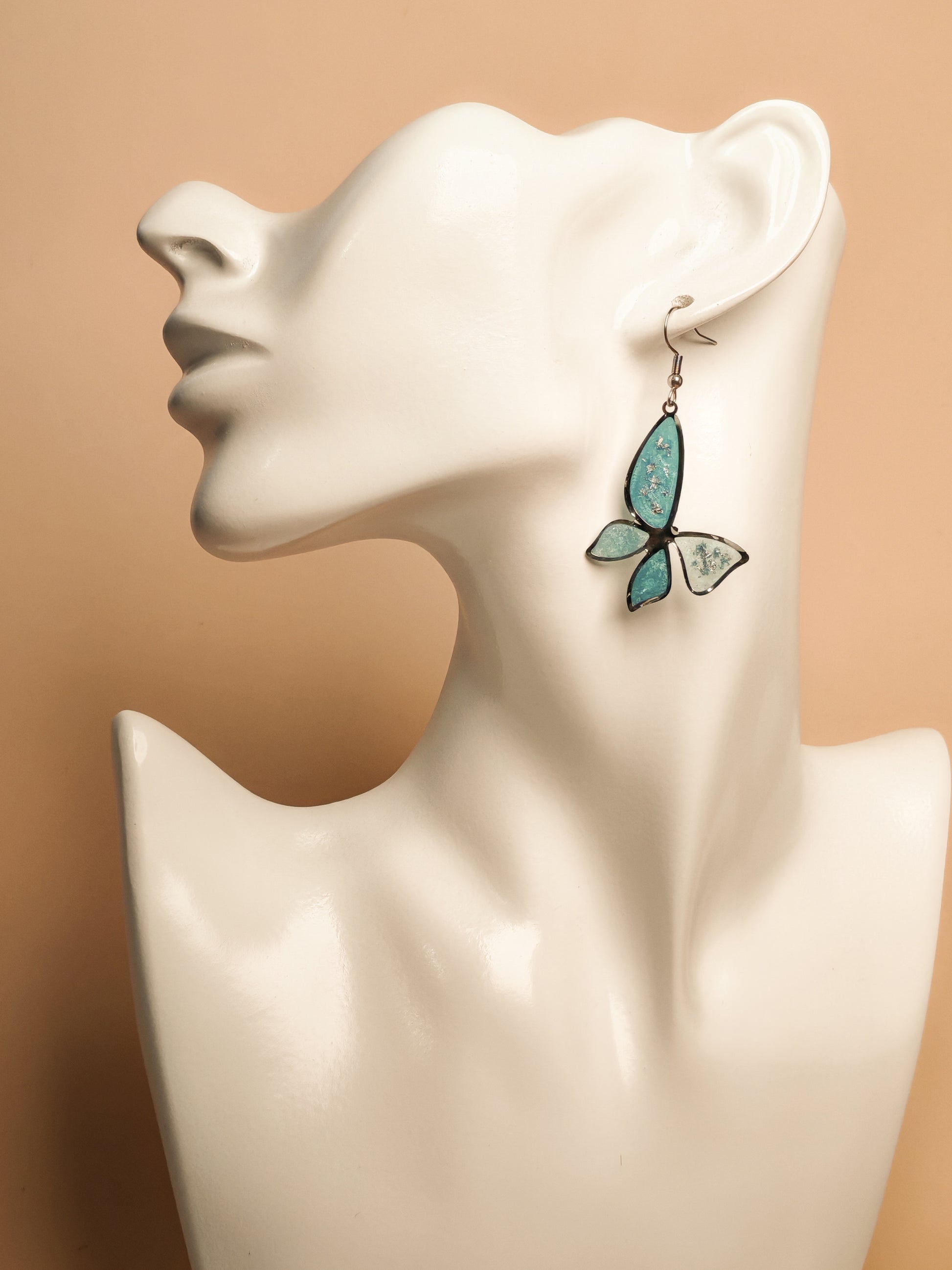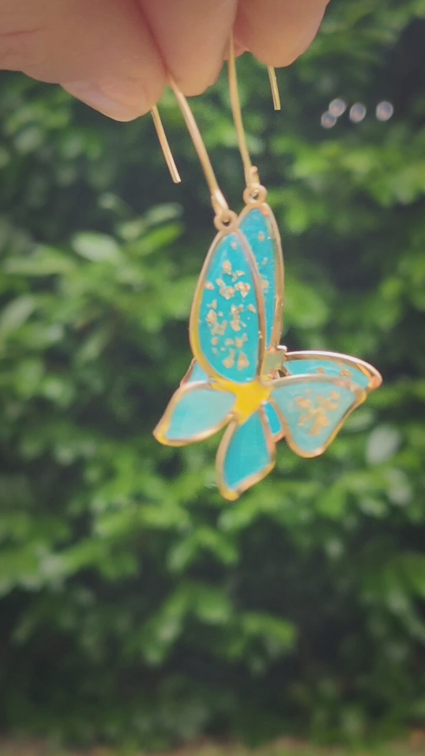 Ces papillons délicats mesurent environ 31 × 40 mm et semblent tout droit sortis d’un univers féerique. Leur structure en acier inoxydable est soigneusement remplie de résine colorée, laissant apparaître de subtils jeux de lumière au cœur des ailes.