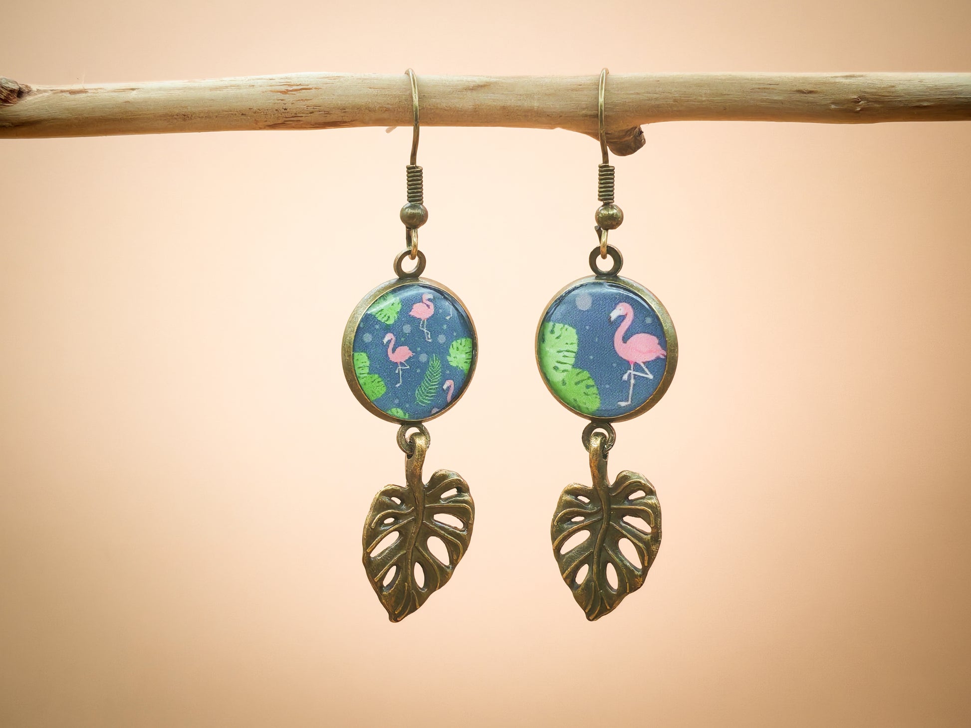 Ensemble bracelet + boucles d’oreilles – Flamants tropicaux