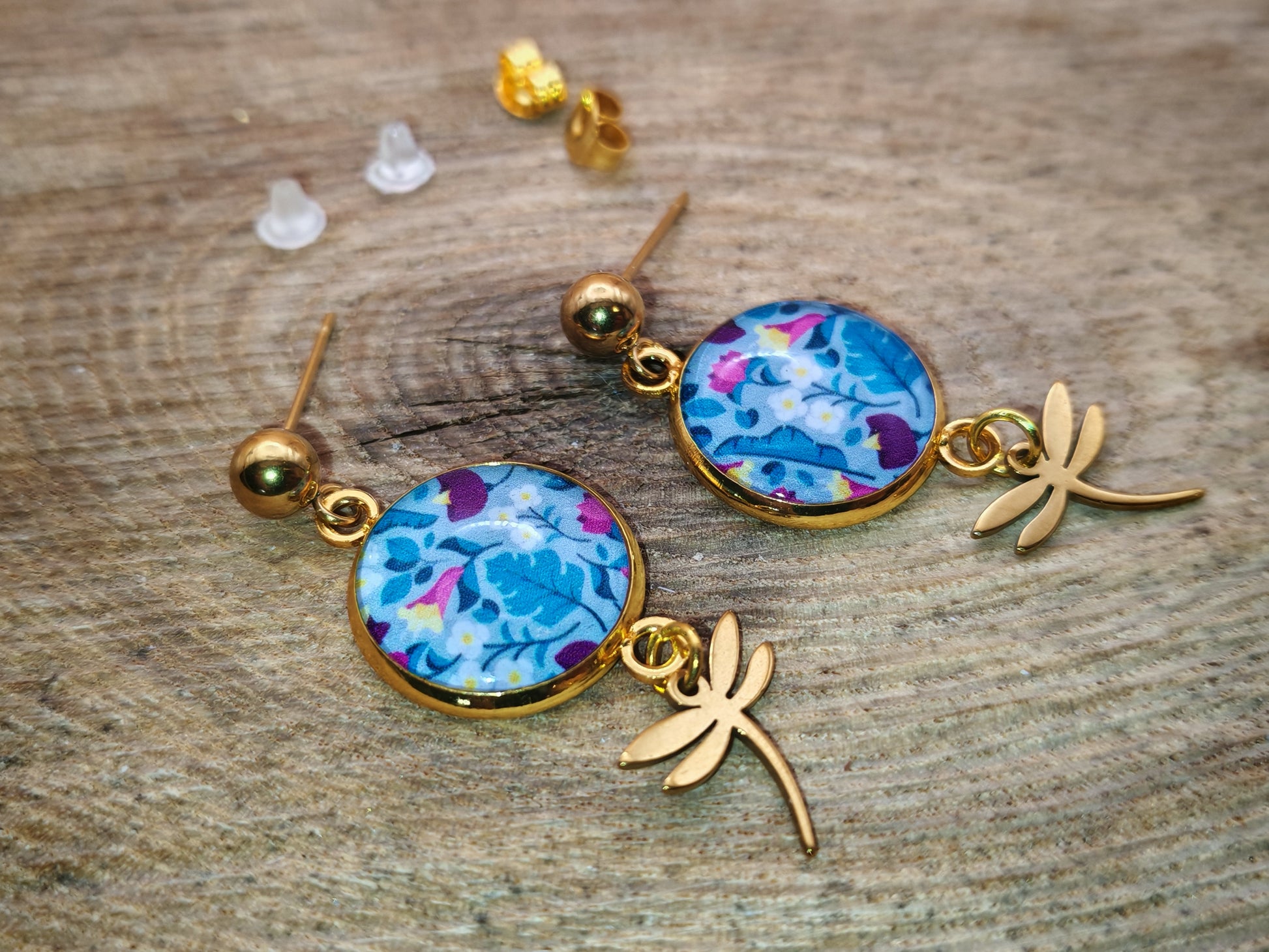 Boucles d'oreilles – Brise turquoise et libellule dorée
