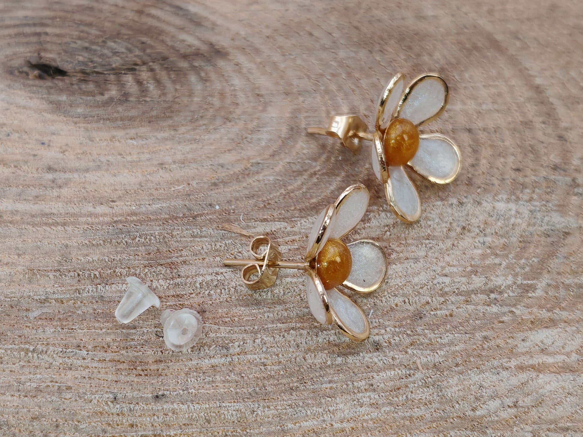 Ces clous d’oreilles en forme de marguerite évoquent la simplicité joyeuse des fleurs d’été.