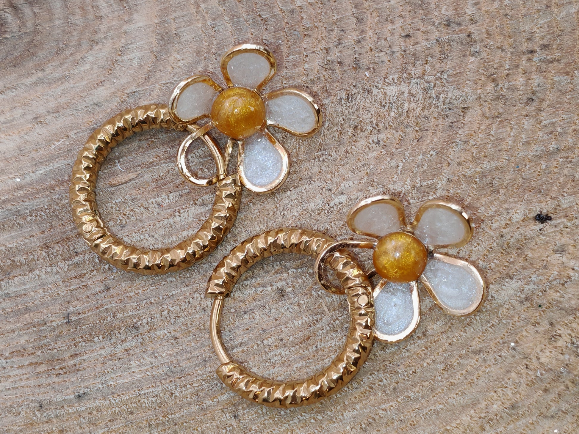 Boucles d’oreilles créoles – Marguerite au cœur solaire