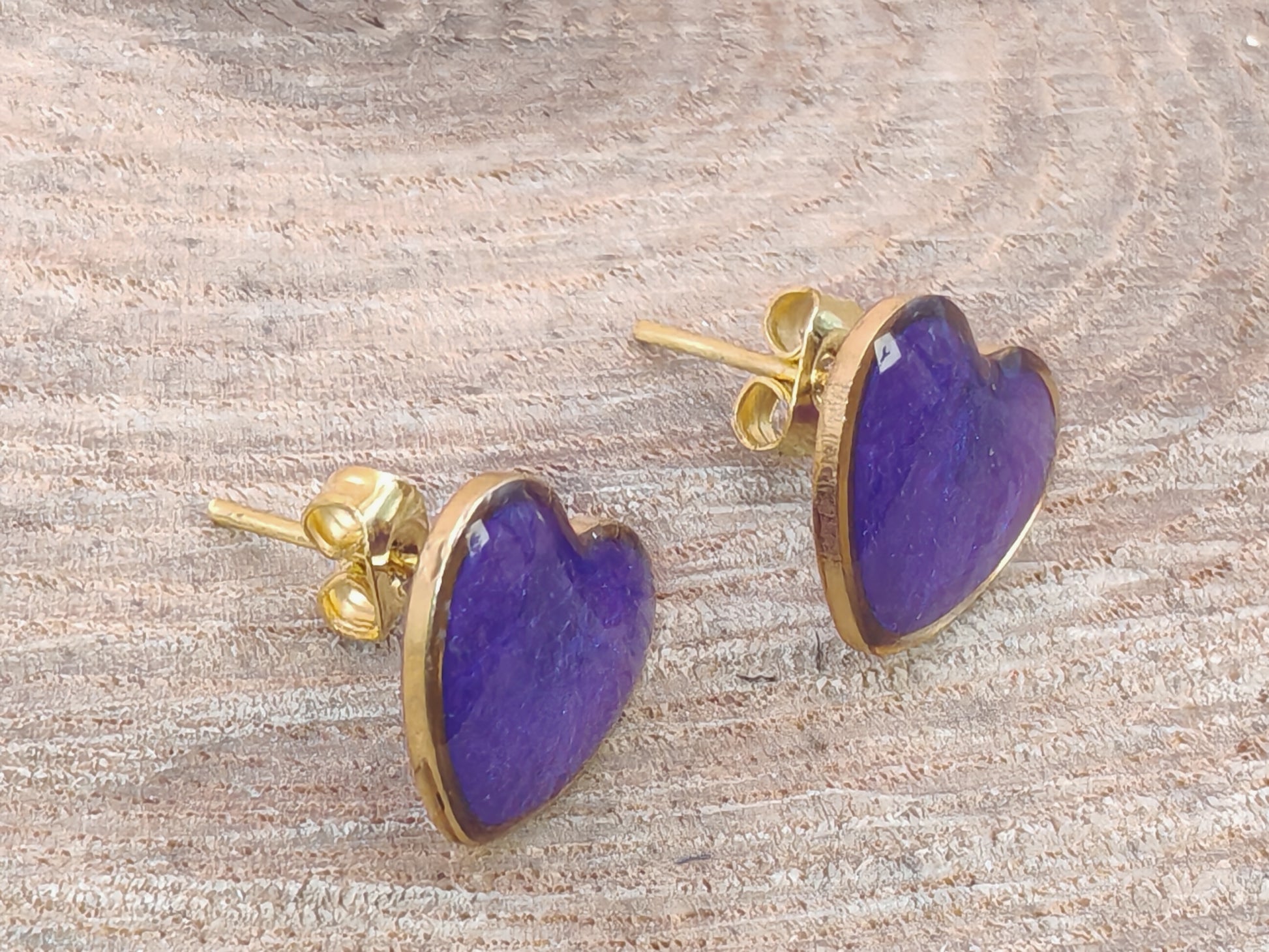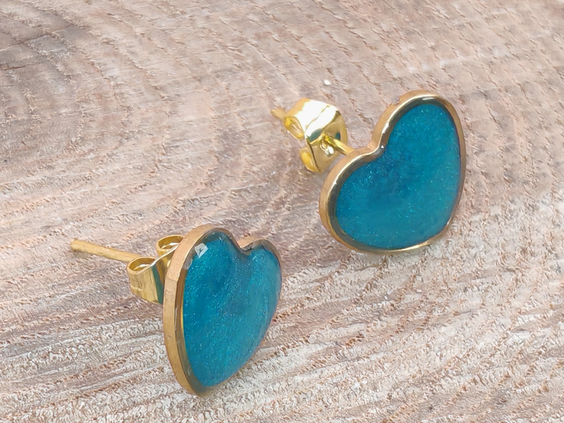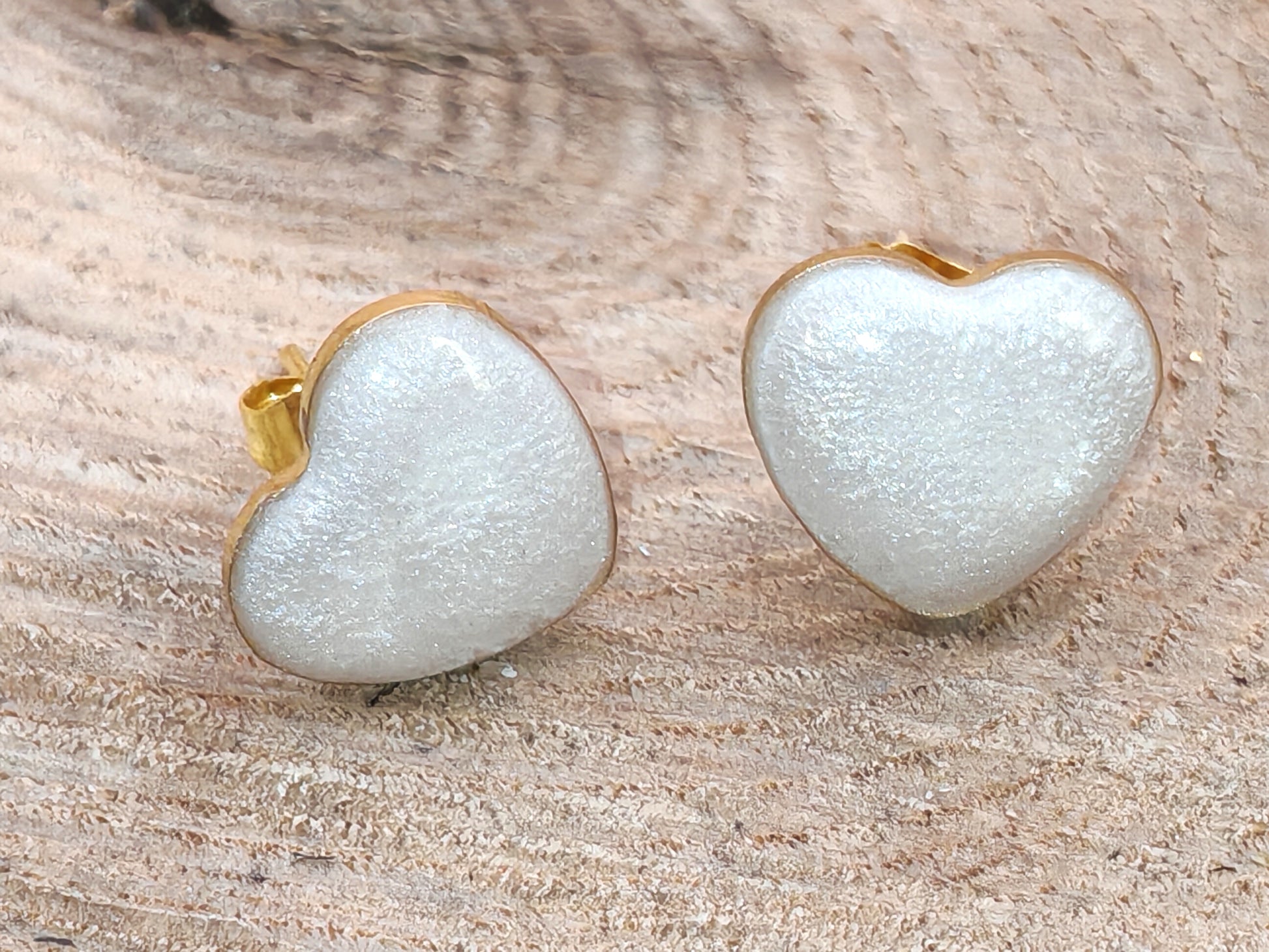 De petits cœurs pleins de tendresse, façonnés à la main et habillés d’une fine résine scintillante.
